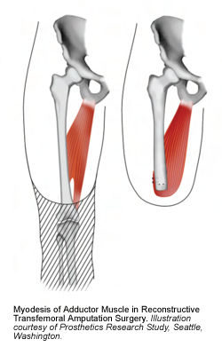 La mínima longitud de muñón óseo aceptable es de siete centímetros, medidos desde el trocanter mayor hasta la extremidad distal del fémur, a los que cabe añadir otros cinco como mínimo de almohadillado muscular. Si no es posible conservar un muñón con esta medidas mínimas, es preferible realizar una desarticulación de cadera porque este pequeño muñón no podremos protetizarlo con una prótesis femoral y dificultará la construcción de la cesta pélvica necesaria en la desarticulación de cadera. El muñón ideal debe tener una morfología cilíndrica. La cicatriz debe quedar situada en la cara inferior o posterior del mismo, sin orejuelas laterales, ni retracciones musculares que dificulten la completa movilidad de la articulación de la cadera suprayacente. Debe realizarse una correcta mioplastia entre el paquete muscular anterior y posterior que sirva para conseguir un buen almohadillado muscular y un buen anclaje de los vientres musculares. Una prótesis femoral se compone de encaje, articulación de rodilla, pie protésico y la estructura que une estos tres elementos. El encaje es la parte más importante de la prótesis y sirve para alojar el muñón. Aunque éste tiene una morfología cilíndrica, el encaje que se utiliza con más frecuencia tiene una forma cuadrangular porque biomecánicamente se ha demostrado que se adapta mejor al muñón y la musculatura de este actúa de una forma más eficaz.